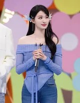 色彩搭配上,王楚然也做出了教科书般的示范。上衣的浅色调与牛仔裤的经典蓝色形成清爽和谐的对比,仿佛蓝天白云般令人心旷神怡。这种低饱和度的色彩组合,非常有助于烘托她白皙的肤色和清新脱俗的气质,在综艺节目明亮活泼的舞台背景下,显得格外亮眼又不会过于喧宾夺主。她的发型通常是自然的披肩长发或简单的束发,妆容也以清透的裸妆为主,强调好气色与自然的眉目,所有细节都统一服务于“清新甜美”这个主题。没有过多的首饰点缀,仅凭自身的气质和服装的剪裁,就足以吸引所有镜头。这恰恰体现了高级的时尚态度:真正的风格来自于自信与对自身特质的深刻理解,而非堆砌潮流单品。