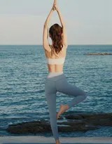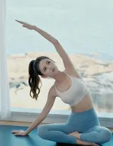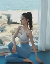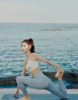 照片中,张予曦身着简约的紧身运动套装,服装色彩与海天背景形成柔和对比,既突出了身材曲线,又不失清新自然。作为一名拥有舞蹈功底且常年保持健身习惯的艺人,她的肌肉线条紧实而修长,并非单纯的纤细,而是蕴含着清晰的力量感。每一个瑜伽体式都表现得稳定而舒展,从舒展的“战士式”到需要极强核心力量的平衡体式,都彰显了她背后的自律与付出。