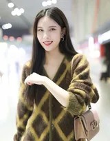 此次造型中,宋妍霏一头浓密的及腰长发自然披肩,随风轻拂,成为整体look不可或缺的一部分。她对着镜头或撩动长发,或比出可爱手势,眼神时而灵动时而温柔,将“可盐可甜”的多变气质演绎得淋漓尽致。这种在俏皮与随性间的自如切换,形成了奇妙的魅力反差,让简单的机场通行化为一场个人风格的展示。