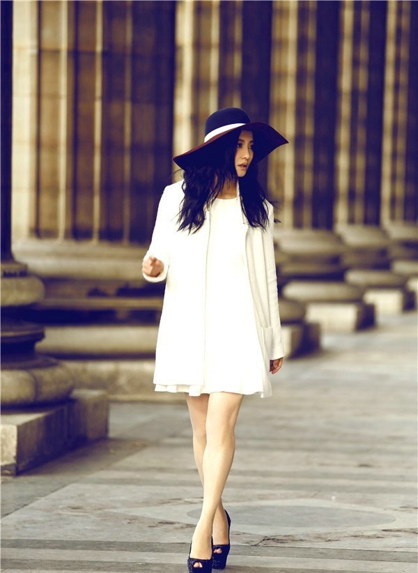 造型在此次写真中起到了画龙点睛的作用。陶红身着的简约白裙,是法式时尚“Less is More”哲学的经典体现,它摒弃了繁复的装饰,仅凭流畅的剪裁和优质的面料,便勾勒出女性曼妙的身姿与脱俗的气质。搭配的不同款式的帽子,无论是优雅的宽檐帽还是俏皮的贝雷帽,都极大地丰富了造型的层次,并强化了复古的韵味。这些精心设计的细节,不仅展现了陶红对时尚的精准驾驭力,更让她在巴黎的背景下,自然而然地流露出一种慵懒、自信、充满文艺气息的熟女风范。这种气质,既带有法式优雅的随性与精致,又蕴含了东方女性特有的含蓄与温润,成就了一种跨越文化的美学共鸣。