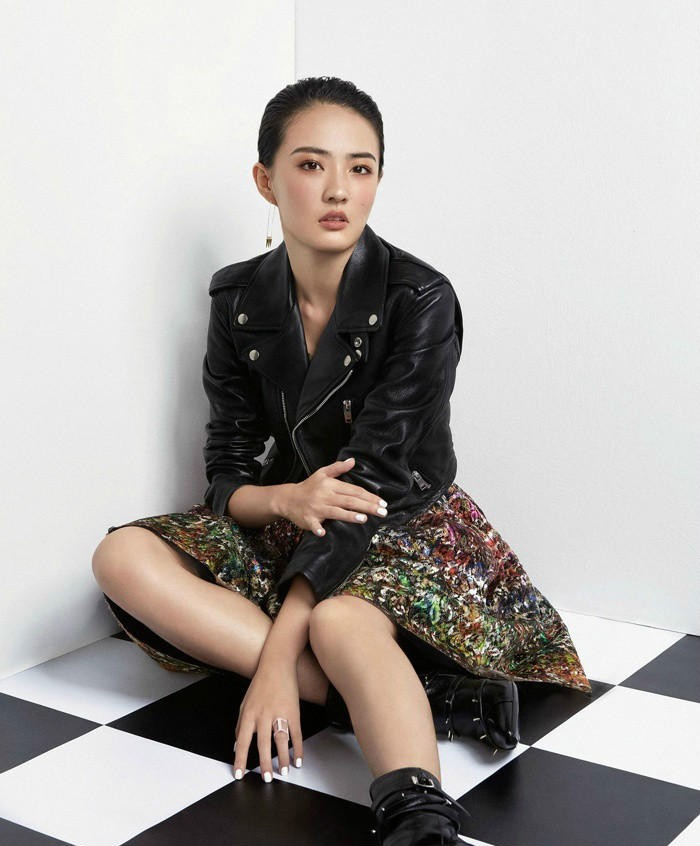 在这组大片中,徐璐身着的经典黑色机车夹克无疑是核心焦点。皮质的犀利光泽与铆钉、拉链等金属元素的结合,完美诠释了摇滚风格的核心精神——不羁与反叛。这种单品自带故事感和力量感,能将穿着者的气质瞬间从柔美拉向飒爽。徐璐巧妙地将这件充满攻击性的外套与简约的黑色内搭相结合,避免了过度堆砌的俗套,反而更突出了她清晰的面部轮廓和坚定的眼神,一种“柔中带刚”的独特魅力油然而生。