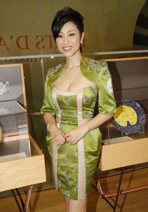 除了利落的裤装,陈法蓉也曾尝试极具东方风情的旗袍造型。一袭淡雅的绿色旗袍,勾勒出她曼妙的曲线,旗袍的立领、斜襟和开叉设计充满了柔美浪漫的气息,再搭配一件墨绿色的网纱披肩,更显清新恬淡与名媛气场。这展现了她气质中妩媚、温婉的另一面,证明了其风格的可塑性。