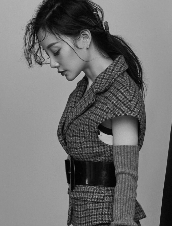 值得一提的是造型与场景的极简化处理。没有多余的背景道具,空间被最大程度地留白,这使得李小璐成为了画面中唯一也是绝对的核心。无论是松散垂落的发丝,还是看似随意搭放的手指,每一个细节都在精心设计下显得自然而有力。这种“少即是多”的美学理念,迫使观者去阅读她脸上的每一丝情绪变化,去触摸画面中无声流淌的时尚叙事。