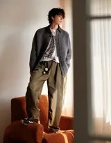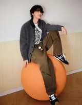 在服装搭配上,灰色外套与工装裤的选择可谓匠心独运。灰色是一种极具包容性的中性色,它不张扬,却自带高级的柔和质感,与居家环境所需的宁静氛围高度契合。外套的版型宽松舒适,摒弃了束缚,强调的正是居家时光最珍贵的“惬意”二字。而工装裤的加入,则为这份柔软注入了一丝恰到好处的硬朗与率性,避免了整体造型过于慵懒,平衡了少年感与男性微妙的成熟气息。这种混搭看似随意,实则精准地勾勒出一个既有生活温度又不失个性品味的年轻形象。