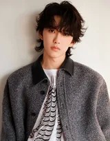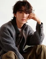 卷毛发型无疑是这组写真的点睛之笔。不同于舞台上的精致造型,这种略带凌乱感的卷发显得随性而生动,仿佛刚刚睡醒的自然状态,极大地削弱了距离感。微卷的发丝柔软地垂落额前,不仅修饰了脸型,更增添了几分邻家男孩的亲切与懵懂。这种发型与他本身清新干净的五官相得益彰,完美诠释了“暖男”与“少年感”的融合。在镜头下,发丝的每一处卷曲都似乎带着呼吸,随着他的动作和室内微弱的气流轻轻晃动,让静态的照片也充满了生动的韵律。