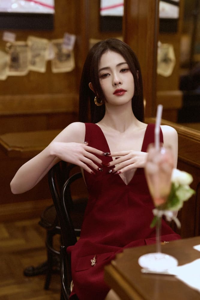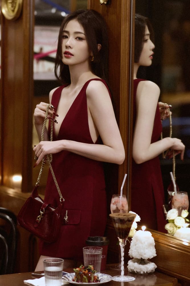 白鹿的表现力与这套服装以及古驰的新理念产生了绝佳的化学反应。她以一头利落的公主切发型搭配,打破了以往留给观众的清新“白月光”印象,瞬间化身为明艳夺目的“朱砂痣”。她的姿态从容而自信,眼神坚定,无需过多表情或动作,便自然散发出一种内敛而强大的气场。这种气场与她近年来在演艺事业上的稳步上升息息相关,从《周生如故》到《长月烬明》,再到一年内交出《白月梵星》、《北上》、《临江仙》三部爆款剧的“扛剧女王”表现,持续的作品输出和角色锤炼,为她积累了深厚的底气和从容不迫的巨星风范。这份由内而外的专业魅力,让她能完美驾驭安可拉红所代表的欲望与自信。