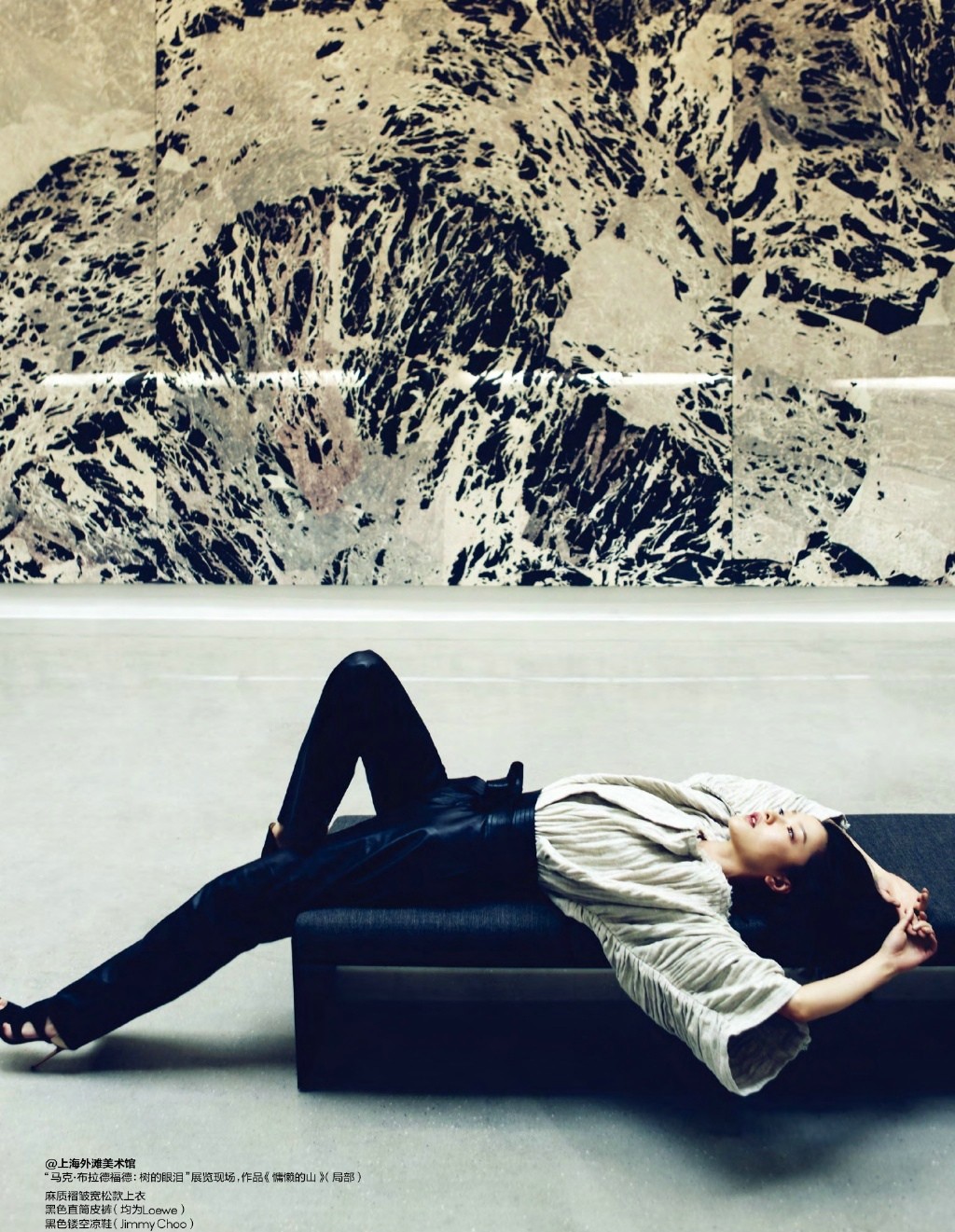 在时装造型上,大片涵盖了从极致简约的廓形到点缀精致细节的设计。无论是利落的西装、飘逸的长裙,还是具有结构感的独特单品,都在杜鹃的诠释下拥有了生命。她对服装的理解和驾驭能力,得益于其深厚的职业积淀。作为第一位走上高级定制T台的中国模特,杜鹃经历了国际时装周密集秀场的淬炼,对时装的演绎早已超越了单纯的展示,而升华为一种个人气质与设计理念的共鸣。她的表现,让人联想到她在其他采访中提及的“腔调”——那是上海人一种讲究分寸、极具自我风格的表达方式。这种“腔调”并非刻意营造,而是内在修养与审美品位的外化。
